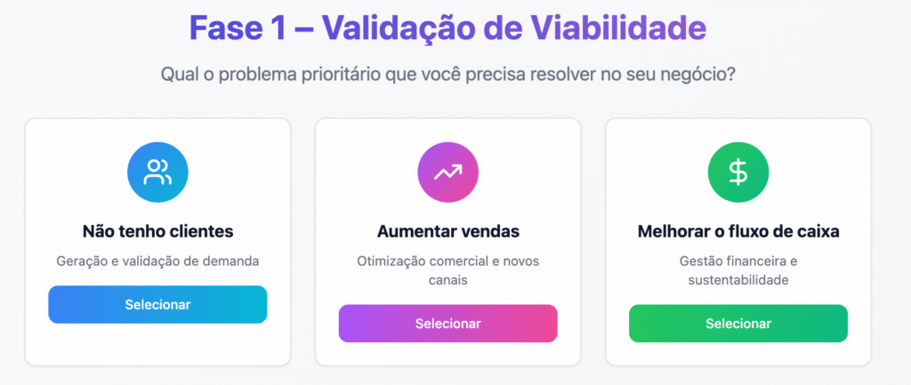 Um diagnóstico empresarial completo: caixa, margens, concorrência, capacidade operacional e perfil do cliente. Sem isso, qualquer metodologia fica apoiada em terreno instável.